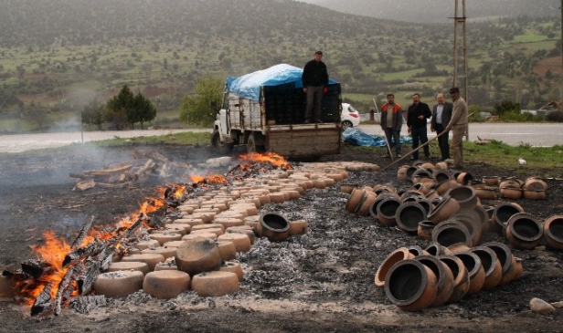 Mihalıççık’ın Sorkun köyündeki kadınlar, 800 yıldır çamurdan mutfak eşyaları üretiyor. Geleneksel olarak "göveç" veya "gudu" adıyla bilinen toprak kaplar, sadece kadınlar tarafından hazırlanıyor. Köylüler, çömlek yapımını öğrenmesinler diye başka köylere kız vermediklerini ifade ediyor. Ancak zamanla köyden yaşanan göçler nedeniyle yeni nesillere bu sanatı öğretmede zorluk yaşadıklarını belirtiyorlar. Yine de, yaşlı kadınlar el sanatlarına devam ediyor ve kadınlar, bu sayede ekonomik hayata katkıda bulunuyor. Sanatkar kadınlar, köylerine yarım saat mesafedeki dağdan hayvan sırtında getirdikleri toprağı, öncelikle taşlardan ayıklayıp ayaklarıyla ezerek çamur haline getiriyor. Dinlendirdikleri çamuru, toprak eşya yapımında kullanarak geleneklerini sürdürmeye çalışıyorlar. Çömlek ustası Mehmet Kartal ise, ürettikleri çömleklerin Türkiye’nin dört bir yanında satıldığını belirtiyor. Mayıs ayında üretim sürecine başladıklarını ve çömleklerini rüzgar ve ateşin etkisiyle pişirdiklerini vurgulayan Kartal, pişen göveçleri 30 liradan sattıklarını aktarıyor.