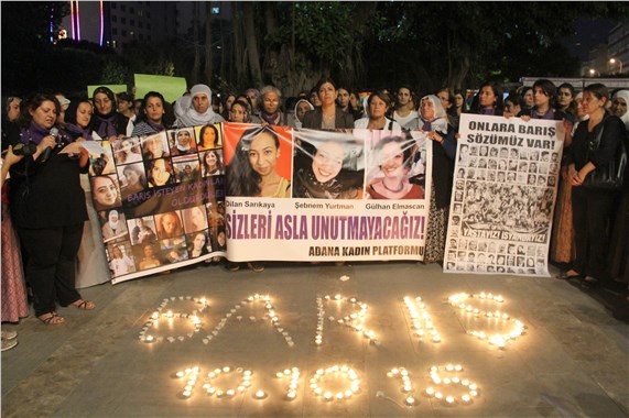 Adana’da aralarında HDP Adana Milletvekili Meral Danış Beştaş’ın bulunduğu bir grup kadın oturma eylemi yaparak Ankara’daki bombalı saldırıda ölenleri andı. İnönü Parkı’nda toplanan kadınlar mumlarla ‘barış’ ve Ankara katliamının yaşandığı 10 Ekim tarihine yazarken, hükümet aleyhine sloganlar attı.