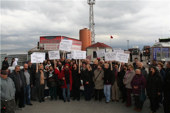 Mudanya'da Ergül Batman başkanlığındaki CHP Mudanya İlçe Başkanlığı’na bağlı üyeler, Mudanya İskelesi önünde Bursa Büyükşehir Belediyesi’nin ilçedeki çalışmalarına yönelik sessiz eylem yaptı. Partililer, ağızları bantlı olarak ellerinde tuttukları pankartlarla Büyükşehir’in gerek bir türlü tamamlayamadığı sahil projesini, gerekse de iskelenin kullanım hakkını almasına yönelik girişimini eleştirdi. CHP’liler, 10 dakika boyunca sessiz kaldıkları iskele önünde alkışlarla tepki gösterdi.