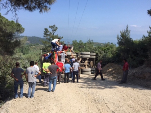 Bursa'nın Mudanya ilçesine bağlı Altıntaş Mahallesi'nde yer alan ana yolun bozuk olması nedeniyle, aynı bölgede bir ay içinde ikinci kez kamyon devrilmesi olayı yaşandı. Edinilen bilgilere göre, bugün sabah saatlerinde meydana gelen kazada, devrilen hafriyat kamyonunun sürücüsü sıkıştı. 112 acil sağlık ekipleri, sürücüyü araçtan çıkararak hastaneye kaldırdı.