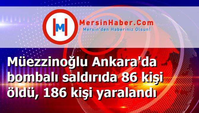 ANKARA - Sağlık Bakanı Mehmet Müeçzzinoğlu bombalı saldırıda olay yerinde 62 kişinin hayatını kaybettiğini, 24 kişinin de ağır yaralı olarak geldiği hastanede vefat ettiğini söyledi. Patlamada toplam 86 kişinin vefat ettiğini belirten Bakan Müezinoğlu, toplam yaralı sayısını 186 olarak verdi.