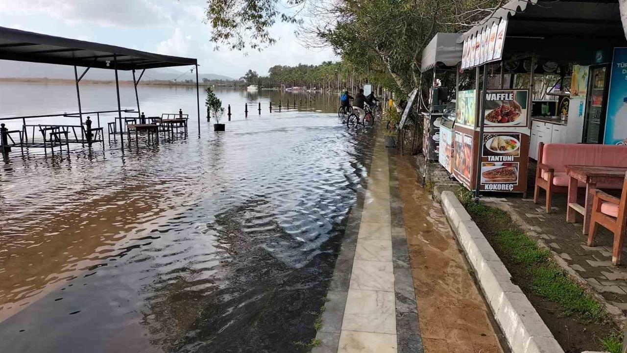 Muğla’nın Köyceğiz ilçesinde son günlerde etkili olan sağanak yağış, Köyceğiz Gölü’nde taşmalara yol açtı. Gölün su seviyesinin artmasıyla birlikte kordon boyunca taşkınlar yaşanmaya başladı. Bu durum, bölgede bulunan işletmelere ait masa ve sandalyelerin su altında kalmasına sebep oldu. Taşkınların, hava koşullarına bağlı olarak önümüzdeki günlerde de bazı bölgelerde devam etmesi bekleniyor. Yetkililer, taşkınla ilgili gerekli önlemlerin alındığını belirtirken, vatandaşların da dikkatli olmaları gerektiği vurgulandı. Ayrıca, olayla ilgili olarak yapılan açıklamalarda, bölgedeki su seviyesinin izlenmeye devam edileceği ifade edildi.