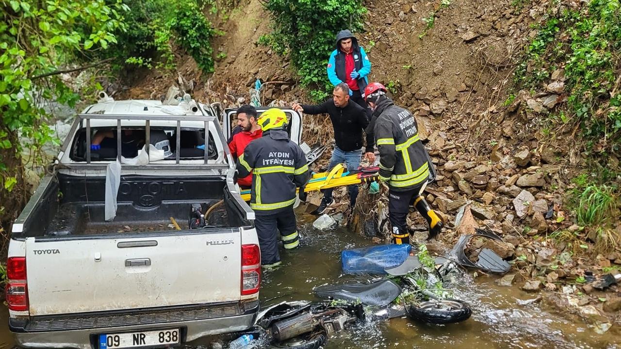Kaza, Muğla'nın Nazilli ilçesi Rahmanlar Mahallesi'nde sabah saatlerinde gerçekleşti. Edinilen bilgilere göre, Nazilli-Beydağ Karayolu üzerinde seyir halinde bulunan M.İ. yönetimindeki 09 NR 83** plakalı kamyonet, henüz belirlenemeyen bir sebeple kontrolünü kaybetti. Kontrolden çıkan araç, yaklaşık 10 metre yükseklikten dere yatağına düştü. Kazada, sürücü M.İ. ile araçta yolcu olarak bulunan bir kişi yaralandı. Olayı gören vatandaşlar durumu 112 Acil Çağrı Merkezi'ne bildirdi. İhbar üzerine bölgeye itfaiye, jandarma ve sağlık ekipleri yönlendirildi. Kısa bir süre içinde olay yerine gelen ekipler, araçta sıkışan yaralıları kurtararak sağlık ekiplerine teslim etti. Yaralılar, olay yerindeki ilk müdahalenin ardından ambulansla Nazilli Devlet Hastanesi'ne kaldırıldı. Yaralıların hayati tehlikesinin bulunmadığı öğrenilirken, kaza ile ilgili inceleme başlatıldı.