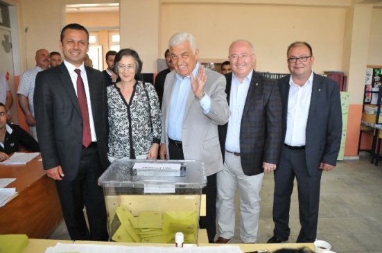 Menteşe Düğerek Mahallesi'ndeki Şehit İbrahim Karaoğlanoğlu Ortaokulu'nda 1046 nolu sandıkta oy kullanan Gürün, vatandaşlarla selamlaştı.