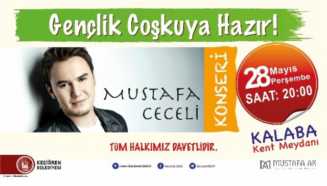 Pop müziğin sevilen ismi Mustafa Ceceli, 28 Mayıs'ta Keçiören Kalaba Kent Meydanı'nda hayranlarıyla bir araya gelecek. Keçiören Belediyesi tarafından organize edilen bu konser, hem KEÇMEK'in yıl sonu etkinliği hem de Gençlik Haftası dolayısıyla düzenleniyor. Etkinlikte gençlerin yoğun katılım göstermesi bekleniyor. Keçiören Belediye Başkanı Mustafa Ak, "KEÇMEK kurslarımızda kadınlar yıl boyunca yeteneklerini sergiliyorlar. Yıl sonunda bu eserleri vatandaşlara sunuyoruz. İki etkinliği de Mustafa Ceceli konseri ile birleştirmek istedik. Kendisiyle Keçiören'de buluşmaktan mutluluk duyuyoruz, herkesi konserimize bekliyoruz" şeklinde konuştu. Geçtiğimiz Nisan ayında düzenlenen Uğur Işılak konserinin ardından Mustafa Ceceli'nin de büyük ilgi görmesi öngörülüyor.