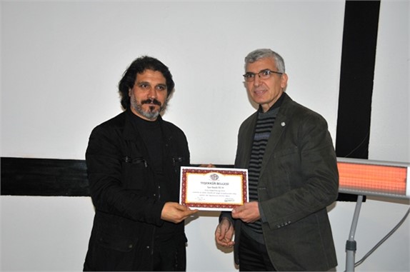Konuşmanın ardından Tarsus Fotoğraf Derneği Başkanı Reşit Tok, sergi ve mini söyleşi nedeni ile günün anısı Mustafa Ercan’a bir teşekkür belgesi verdi. (Kaynak: TarsusMedya.com)