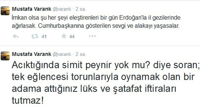 Cumhurbaşkanı Recep Tayyip Erdoğan'ın Başdanışmanı Mustafa Varank, sosyal medya hesabı üzerinden Cumhurbaşkanlığı Sarayı'na yönelik yapılan lüks ve şatafat iddialarına yanıt verdi. Varank, "Acıktığında simit peynir yok mu diye soran, tek eğlencesi torunlarıyla oynamak olan bir adama attığınız lüks ve şatafat iftiraları tutmaz" ifadelerini kullandı. Ayrıca, eleştirenleri Erdoğan ile il gezilerine katılmaları durumunda, Cumhurbaşkanı'na olan sevgi ve ilgiyi bizzat deneyimlemeleri için davet etti.