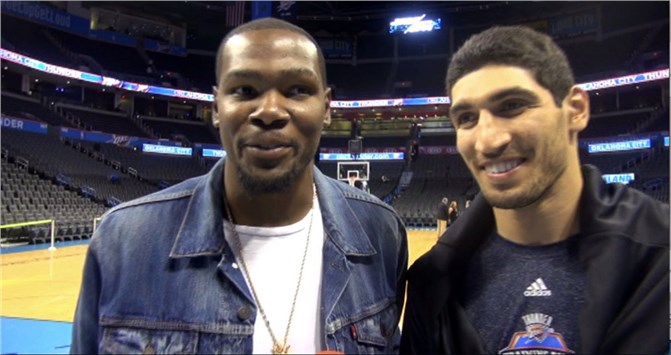 Bir başka yıldız oyuncu Kevin Durant ise Türkiye’de (İstanbul) iki defa bulunduğunu, bir daha gitmek istediğini söyledi. Enes’in Türkiye’yi zaman zaman kendisine anlattığını belirten ünlü oyuncu, "Türkiye’de 2 defa bulundum. Türkiye’ye tekrar gitmeyi dört gözle bekliyorum. Türk takımı Fenerbahçe ile oynamak zevkliydi." diye konuştu.