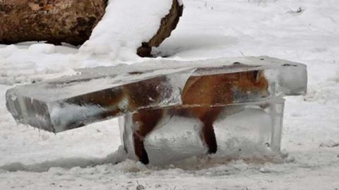 Donan tilkiyi bir avcı gördü. Buz tabakasını kalıp halinde kesti ve nehrin kenarına çekti. İçinde tilkinin bulunduğu buz tabakası dondurucu soğuktan erimediği için bir heykel gibi avcının bıraktığı yerde duruyor ve görenleri hayrete düşürüyor.