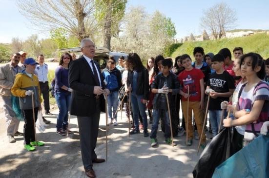 Nevşehir'in Göreme beldesinde bulunan Zemi Vadisi'nde temizlik çalışması yapıldı. Bu etkinlik, Göreme ve Uçhisar Belediyeleri tarafından ortaklaşa düzenlendi. Göreme Belediye Başkanı Nuri Cingil, etkinliğe katılan okul öğrencileri, belediye personeli, turizmciler ve çok sayıda vatandaşa teşekkür etti. Başkan Cingil, vadilerin temizliğinin turizm açısından önemine vurgu yaptı. Temizlik çalışması, her iki belediyenin eş zamanlı hareketi ile gerçekleştirildi ve vadi ortasında buluşuldu. Çalışma sonunda toplanan çöpler, vadi çıkışında çöp aracına taşındı. Etkinliğin ardından katılımcılara özel bir firma tarafından çiğköfte ve ayran ikram edildi.