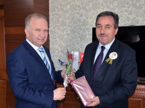 Nevşehir İl Müftüsü Yakup Öztürk, 14-20 Nisan 2015 tarihleri arasında kutlanan “Kutlu Doğum Haftası” dolayısıyla Vali Mehmet Ceylan’ı makamında ziyaret etti. Müftü Öztürk, ziyareti sırasında Müftü Yardımcıları A. Celalettin Alktunkaya ve Yaşar Bolat ile birlikte bulundu. Ziyarette, Vali Ceylan’a günün anısına bir gül, Diyanet İşleri Başkanlığı yayınlarından “Hz. Peygamber ve Birlikte Yaşama Ahlakı” ile Türkiye Diyanet Vakfı yayınlarından “İyilik Ödülleri” adlı kitapçıkları takdim etti. Vali Mehmet Ceylan, Kutlu Doğum Haftası’nın tüm insanlığa huzur getirmesini dilerken, bu haftanın Peygamberimizi daha iyi tanımamıza ve birlik beraberliğimizin artmasına vesile olmasını temenni etti. Müftü Öztürk ise, Kutlu Doğum Haftası’nın “Hz. Peygamber ve Birlikte Yaşama Ahlakı” temasıyla düzenleneceğini ve hafta boyunca yapılacak etkinlikler hakkında bilgi verdi.