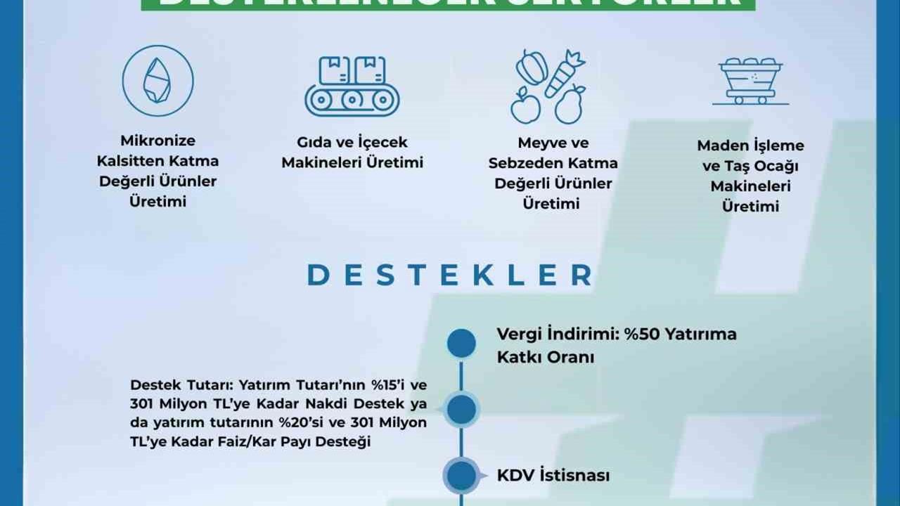 Program ile birlikte, Niğde için öncelikli yatırım konuları arasında gıda ve içecek makineleri üretimi, maden işleme ve taş ocağı makineleri üretimi, meyve ve sebzeden katma değerli ürünler ile mikronize kalsitten katma değerli ürünlerin üretimi yer almaktadır. Bu alanlarda yatırım yapacak girişimcilere çeşitli teşvikler sağlanacağı bildirilmektedir.