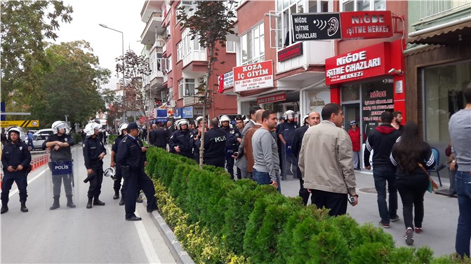 Basın açıklaması sırasında sık sık sloganlar atıldı. Niğde Emniyet Müdürlüğü ekipleri geniş önlem alırken, grubu basın açıklamasının ardından dağılmaları konusunda sık sık uyardı. Basın açıklaması yapıldığı sırada basın açıklaması yapan grup haricinde çevrede bazı gençler Türk bayrağı açtı. Söz konusu grup, 'Polisler de şehit oluyor, Askerler de şehit oluyor' şeklinde slogan attı. Çevik Kuvvet ekipleri her iki taraf arasında durarak olayların çıkmasını önledi.