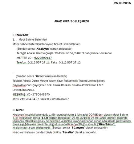 TRT, TIR'ı 07.04.2015 ile 07.05.2015 tarihleri arasında A Reklam Ajansı'ndan kiraladı. Kiralama süresi sona erdikten sonra araç, firmanın tesliminde yan giydirmeleri sökülmüş, ancak üst giydirmeler kaldırılmamıştı. Bu durum, AK Parti Niğde Teşkilatı için hazırlanan yeni araçla ilgili bir karışıklığa neden oldu.