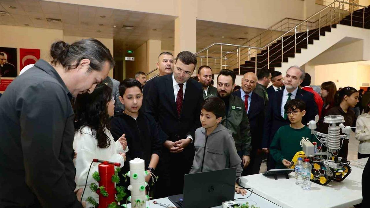 Stantları inceleyen Vali Nedim Akmeşe, öğrencilerden projeler hakkında bilgi aldı.