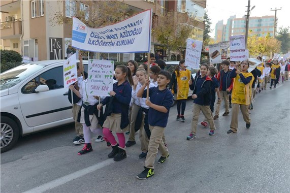Tema Vakfı, Erozyonla Mücadele Haftası dolayısıyla ilkokul ve ortaokul öğrencilerinin katılımıyla Bursa Nilüfer Belediyesi Halk Evi’nin bulunduğu Cumhuriyet Meydanı’na kadar 'Toprağa Saygı' yürüyüşü düzenledi. Nilüfer’in çeşitli okullarından katılan çok sayıda öğrencinin yer aldığı yürüyüşte öğrenciler ‘Toprağı hor gören, geleceği zor görür’ diye sloganlar attı. Ellerindeki dövizlerle de iklim değişikliklerine dikkat çeken öğrenciler Nilüfer Belediyesi Halk Evi önünde bulunan Cumhuriyet Meydanı’na kadar yürüdü.