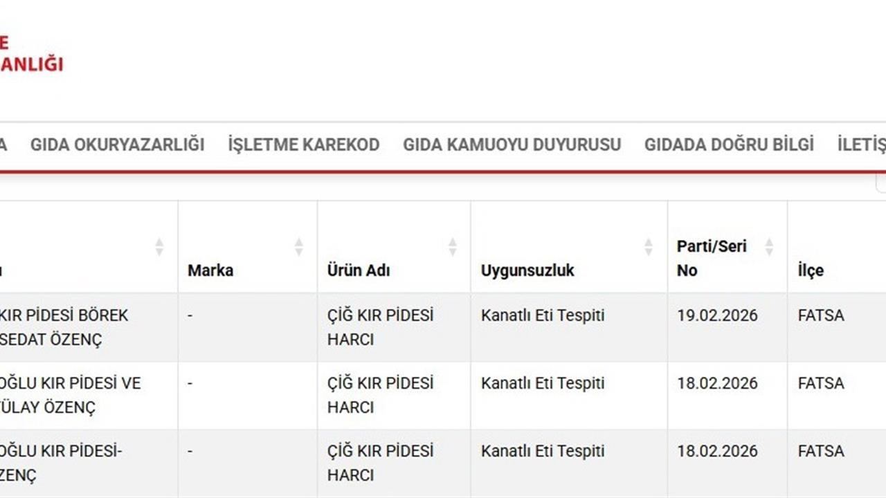 2 Nisan tarihinde açıklanan listede, Fatsa ilçesinde bulunan ‘Kervan Kır Pidesi Börek Salonu’ ve ‘Candaroğlu Kır Pidesi ve Börek Salonu’ isimli işletmelerin isimleri dikkat çekti. Yapılan denetimler sonucunda bu işletmelerden alınan çiğ kır pidesi harcı örneklerinde kanatlı eti bulunduğu belirlendi.