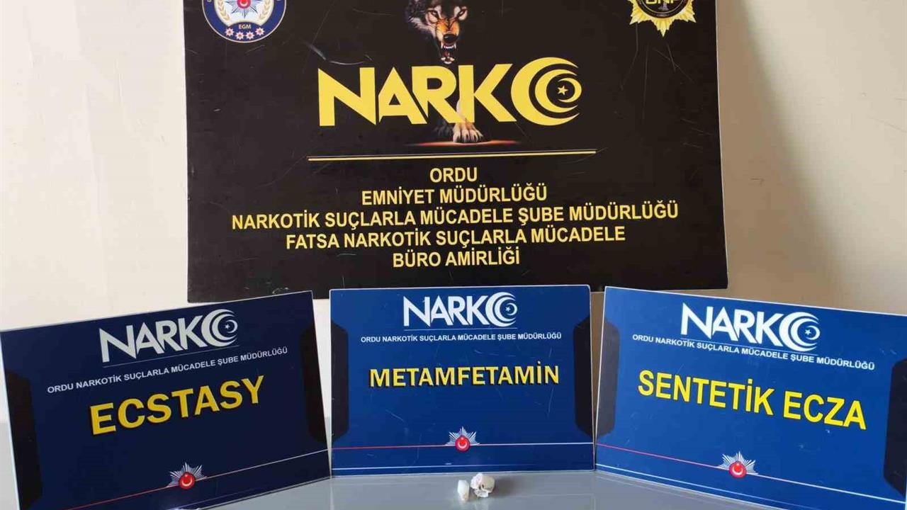 Ordu Merkez'de, Narkotik Suçlarla Mücadele Şube Müdürlüğü'ne bağlı polis ekipleri, uyuşturucu madde kullanımı ve ticaretiyle mücadele amacıyla yoğun çalışmalarını sürdürüyor. Bu kapsamda, son bir haftada gerçekleştirilen operasyonlar neticesinde, 1 gram esrar, 8 gram metamfetamin, 100 gram sentetik kannabinoid ve 252 gram sentetik kannabinoid ham maddesi ele geçirildi. Ayrıca, 62 adet sentetik ecza, 9 adet ecstasy ve 4 kök kenevir de operasyonlar sırasında yakalandı.