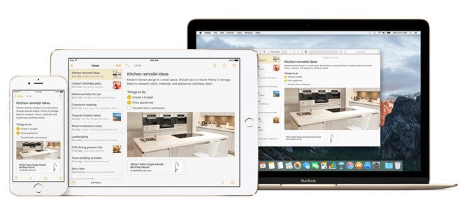 El Capitan; fotoğrafları, PDF’leri, videoları ve diğer dosyaları notların içerisine sürükleyip bırakabilmenize veya Paylaş menüsünü kullanarak, doğrudan başka uygulamalardan Safari web bağlantıları veya Harita konumları gibi içerikleri ekleyebilmenize imkan veren, Notlar uygulaması sunuyor. Kolayca oluşturulabilen kontrol listeleri, yapılması gereken önemli şeyleri takip edebilmenize yardımcı olurken, yeni İlişik Tarayıcı ilişiklerinizi tek bir sade görünümde organize ederek, aradıklarınızı bulmanızı kolaylaştırıyor. iCloud sayesinde notlarınız her zaman eşzamanlanıyor, böylece, bir cihazda not oluşturup düzenleyebiliyor veya aynı notu diğer cihazlarda kullanabiliyorsunuz.