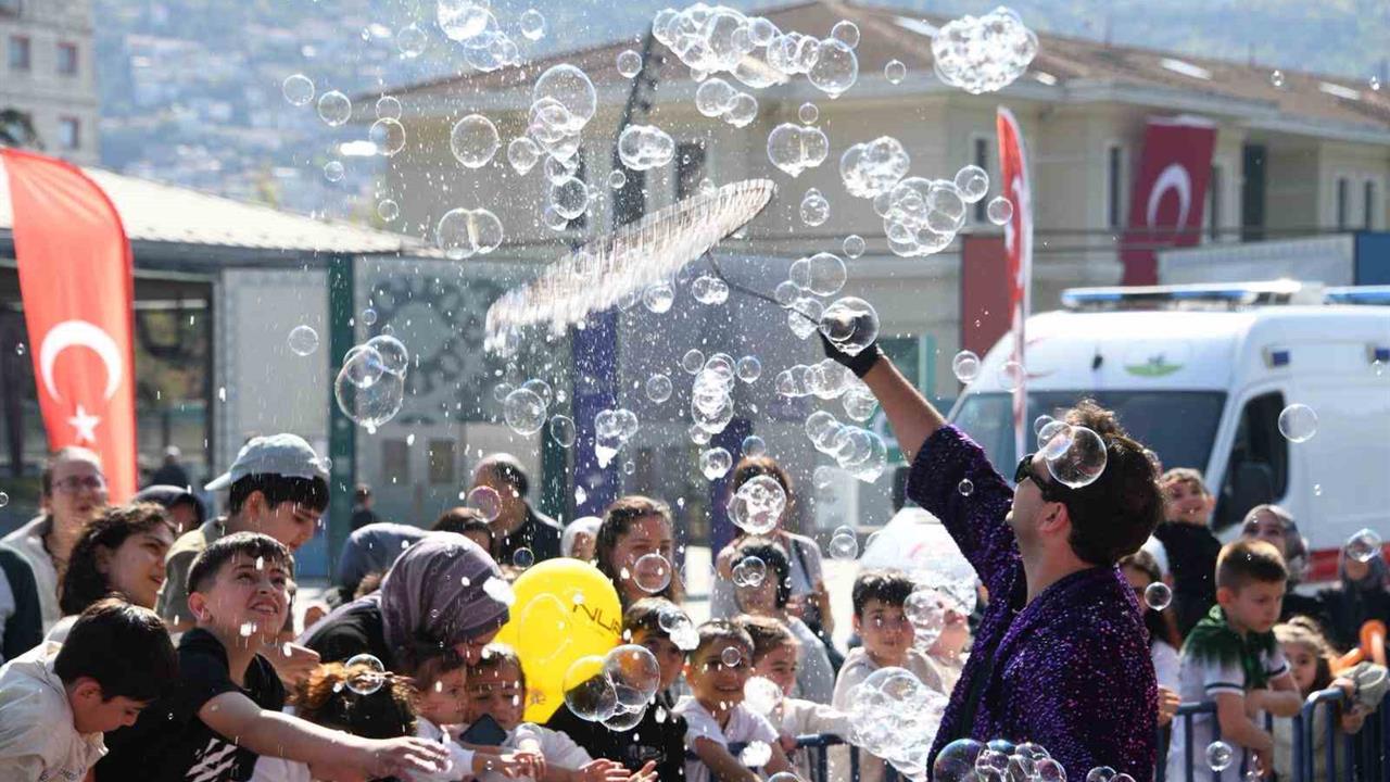 Çocukların mutluluğunu merkeze alan Osmangazi Belediyesi, meydanda oluşturduğu özel etkinlik alanlarıyla bayram atmosferini daha da zenginleştirdi. Özenle hazırlanan oyun parkurları, atölyeler ve yarışma alanları sayesinde çocuklar gün boyunca aktif ve keyifli vakit geçirme imkanı buldu. Renkli dekorasyonlar ve tematik süslemelerle donatılan Osmangazi Meydanı, ziyaretçilere görsel bir şölen sunarken, alanın her köşesinde çocuk kahkahaları yankılandı.