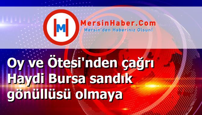 Oy ve Ötesi gönüllüleri, Bursa için ihtiyaç duyulan 5 bin 500 sandık gözlemcisi sayısını tamamlamak için herkesi kayıt olmaya çağırıyor. Oy ve Ötesi, 20 Ekim Salı günü 20.00’de ve 25 Ekim Pazar günü 14.00’te Bursa Akademik Odalar Birliği Yerleşkesi’nde, 20 Ekim Salı günü 20.00’de İhtiyaç Akademi İnegöl’de, 21 Ekim Çarşamba günü 19.30’da Milton Gemlik’te, 22 Ekim Perşembe günü 20.30’da Mountania Otel Mudanya’da eğitim toplantıları düzenleyecek.