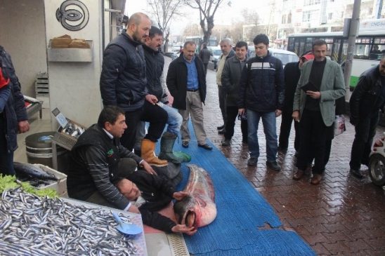 Büyük balığı gören vatandaşlar ise cep telefonları ile fotoğraf çekti.