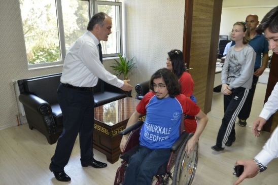 Pamukkale Belediye Başkanı Hüseyin Gürlesin, Denizli Büyükşehir Belediyespor (DBB) Tekerlekli Sandalye Basketbol Takımına özel olarak üretilmiş tekerlekli sandalye hediye etti. Takım oyuncuları, Engelliler Sorumlusu Turgay Besim, Takım Hocası Erol Kayhan ve Takım Kaptanı Murat Soncul ile birlikte Başkan Gürlesin’i makamında ziyaret etti. Engelliler Sorumlusu Turgay Besim, Başkan Gürlesin’in takıma sağladığı desteği vurgulayarak, "Daha önce kendisiyle bir araya gelmiştik ve ihtiyaçlarımızı sormuştu. O zaman henüz belediye başkanı değildi. Seçilmesi durumunda engelli basketbolculara destek olacağı sözünü vermişti. Şimdi bu sözünü tutarak bizlere özel tekerlekli sandalye hediye etti. Takım adına teşekkürlerimizi sunuyoruz." şeklinde konuştu.