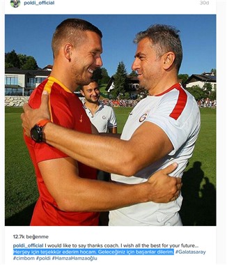 Podolski ve Hamza Hamzaoğlu’nun yer aldığı fotoğrafın altına golcü oyuncu, hem İngilizce hem de Türkçe olarak eski teknik direktörüne teşekkür etti. Podolski hesabından eski hocasıyla ilgili şu cümleleri kurdu: “Her şey için teşekkür ederim hocam. Geleceğiniz için başarılar dilerim.”