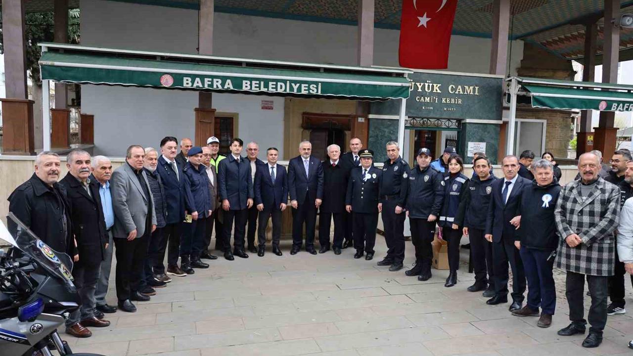 Etkinliklerin bir diğer kısmı ise Bafra Büyük Cami’de yapıldı. Cuma namazı öncesinde şehitler için Mevlid-i Şerif okutuldu. Bu programa Bafra Kaymakamı Dr. Mustafa Altınpınar, Bafra Belediye Başkanı Hamit Kılıç, İlçe Emniyet Müdürü Murat Öner, İlçe Jandarma Komutanı Jandarma Üsteğmen Benal Kurt, emekli Emniyet Genel Müdür Yardımcısı Hasan Yücesan ve çok sayıda vatandaş katıldı. Kur’an-ı Kerim tilaveti ile başlayan programda, şehitler için yapılan dualar duygu dolu anlar yaşattı.