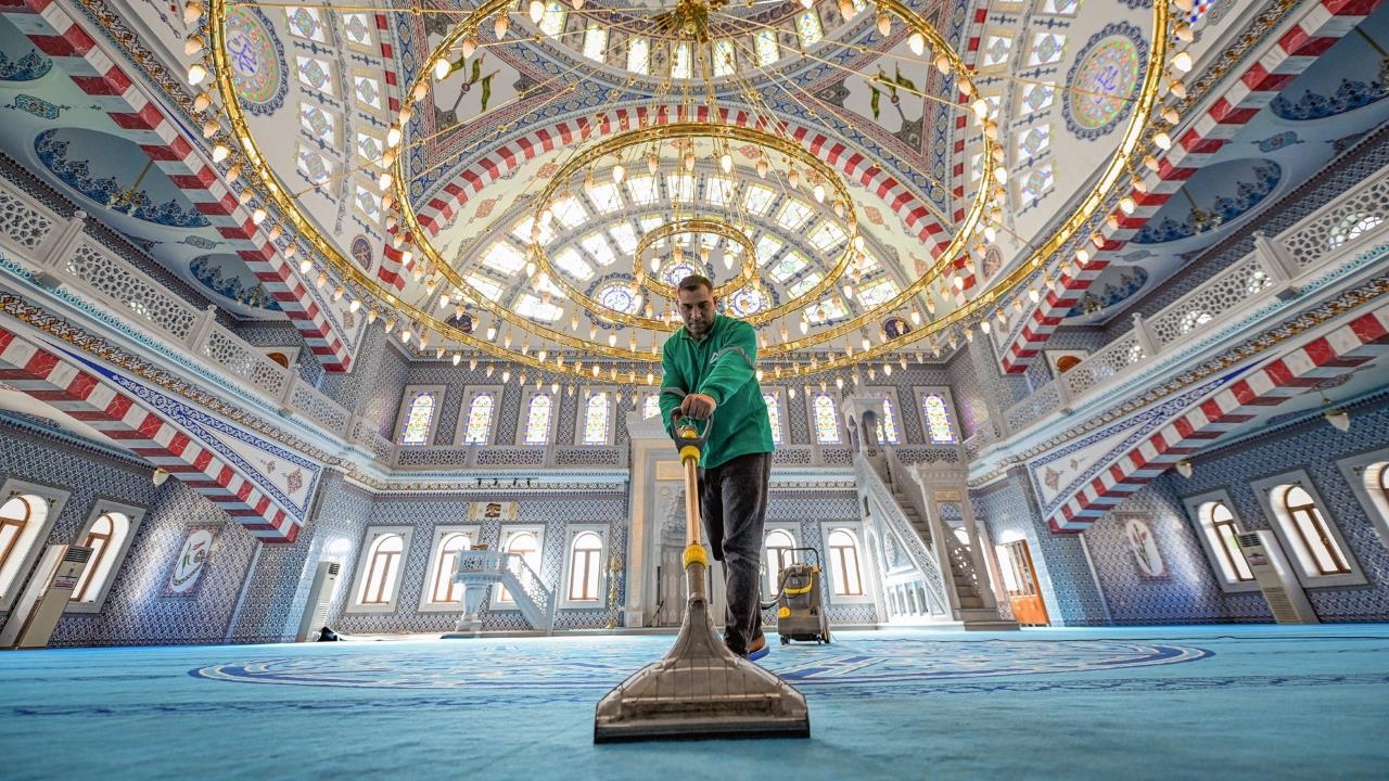 İbadethane temizlik ve dezenfekte ekiplerinin merkez ve ilçe ayrımı gözetmeden devam ettirdiği temizlik çalışmaları Ramazan ayı öncesinde hız kazandı. Vakumlu süpürge ve halı yıkama makinesi, gül suyu makinesi ve diğer temizleme araçları ile ibadet edilen mekanlar detaylı olarak temizlenirken, ibadethanelerin farklı bölümleri özenle sterilize ediliyor. Ahşap ve seramik gibi yerler özel temizlik malzemeleri ile silinirken, kullanılan tespihler de dezenfekte çalışmasından geçiriliyor.