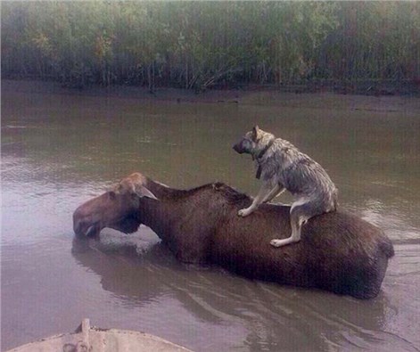 Bir geyiğin sırtında köpeği taşıması ise ilginç görüntü oluşturdu. CİHAN