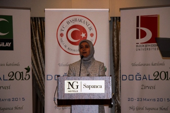 Sakarya'nın Sapanca ilçesinde düzenlenen Türkiye Doğal Beslenme ve Yaşam Boyu Sağlık Zirvesi'nde konuşan Emine Erdoğan, “Kaşığımızdaki her lokma sadece bedenimizi değil, geleceğimizi de tehdit ediyor. Bu nedenle beslenme kaynaklı sağlık sorunlarımızı halletmeden Türkiye'yi kalkındıramayız” ifadesini kullandı. Zirve, 20-23 Mayıs tarihleri arasında gerçekleştiriliyor ve Türkiye Cumhuriyeti Başbakanlığı, Türkiye Yeşilay Cemiyeti ile Bilecik Şeyh Edebali Üniversitesi tarafından ortaklaşa düzenleniyor. Etkinliğe Emine Erdoğan'ın yanı sıra Başbakan Ahmet Davutoğlu’nun eşi Sare Davutoğlu ve çeşitli bakanlar da katıldı. Sare Davutoğlu, sağlıklı beslenmenin yalnızca belirli besin gruplarını tüketmekle sınırlı olmadığını, üretimden sofraya kadar her aşamada dikkat edilmesi gereken kriterler olduğunu belirtti. Emine Erdoğan, obezite ve açlık sorunlarına da değinerek, çocuklara sağlıklı beslenme alışkanlıklarının kazandırılması gerektiğini vurguladı. Ayrıca, doğal gıdanın önemine dikkat çekerek, tarım ilaçlarının olumsuz etkilerinden bahsetti. Zirve sonunda katılımcılara teşekkür plaketi verildi.