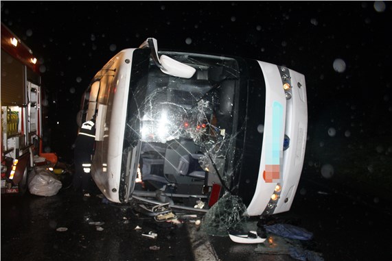 SAKARYA - Sakarya'nın Hendek ilçesinde, TEM Otoyolu'nda seyreden yolcu otobüsünün devrilmesi sonucu 25 kişi yaralandı.