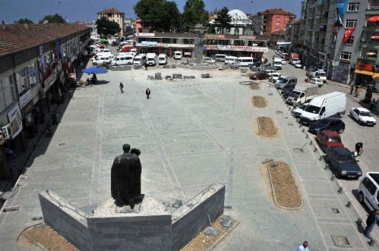 İlçe merkezindeki 1600 metrekarelik meydan betonla döşeniyor ve hükümet konağı ile müftülük binası çevresinde peyzaj çalışmaları yapılıyor.