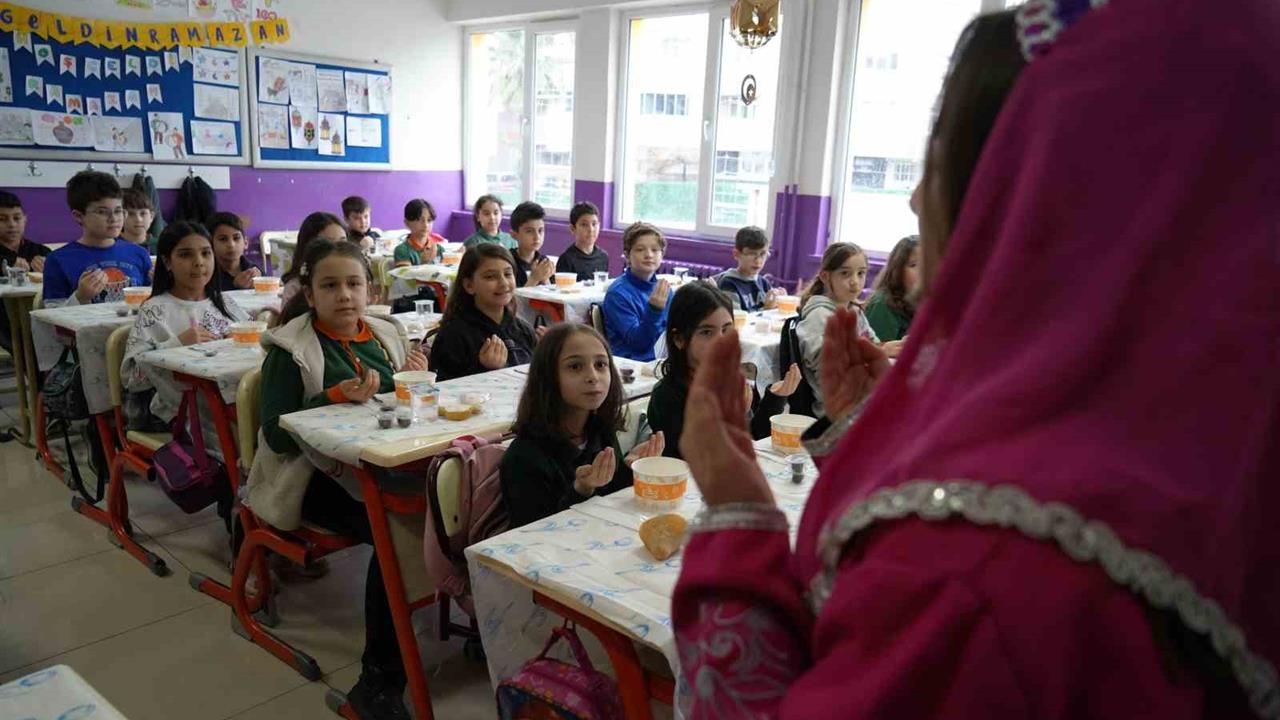 Öğrenciler, velilerinin evden getirdiği sıcak çorbalarla oruçlarını açarak "Kâbe’de Hacılar Hu Der Allah" ilahisini söylediler.