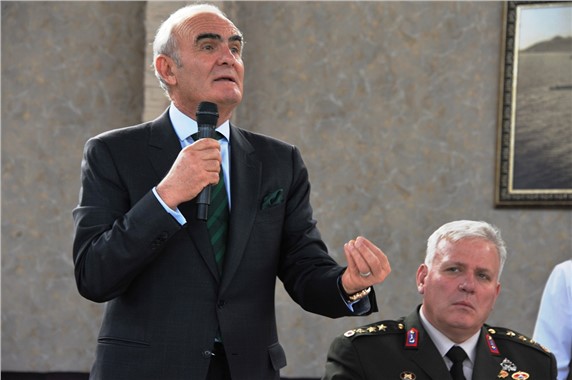 Batılıların kendi gelişmişliklerini daha yukarılara taşımak adına bütün atıklarını Karadeniz’e ve Tuna Nehri’ne akıttığını ifade eden Vali Şahin, “Batılıların ikircikli durumu herkesçe malumdur. Onlar herşeyi yapar, mübahtır. Ama siz en ufacık bir olumsuzluk yaptığınızda bunu abartarak söylerler. Bir tane petrol atığına bulaşmış kuşu günlerce konu ederler. Yahut bir balinayı ya da bir kutup ayısını haftalarca TV ekranlarından size izletirler. Ama yanı başınızda insanların üzerine bomba yağdırırlar. Bunlar sanki yapılması gereken birşey gibi size sunulur. Çünkü bomba yağdırmadan önce medya algısı ile toplumu ısıtıyorlar." diye konuştu.