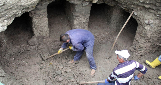 Samsun’un İlkadım ilçesi Kalkanca Mahallesi'ndeki arsada 8 katlı bir inşaat için temel çalışmaları sırasında tarihi bir mezar keşfedildi. Samsun Arkeoloji ve Etnografya Müzesi Müdürlüğü ekipleri, toprakların çökmesi sonucu ortaya çıkan mezarda kazı çalışmalarına başladı. Bu çalışmalar, önceki gün başlayarak dün ve bugün devam etti. Kazının Helenistik döneme ait olduğu belirtiliyor. Kazı sırasında, tarihi toprak testi ve gözyaşı şişeleri ile birlikte insan kemikleri bulundu. Kemiklerin mezarın çeşitli yerlerine dağılmış olması dikkat çekti. Ayrıca, mezar olarak değerlendirilen 5 ayrı bölmedeki topraklar da boşaltılarak temizleme işlemleri gerçekleştirildi. Kazı çalışmaları, mesai bitiminde sona erdi ve yarın devam edeceği öğrenildi.