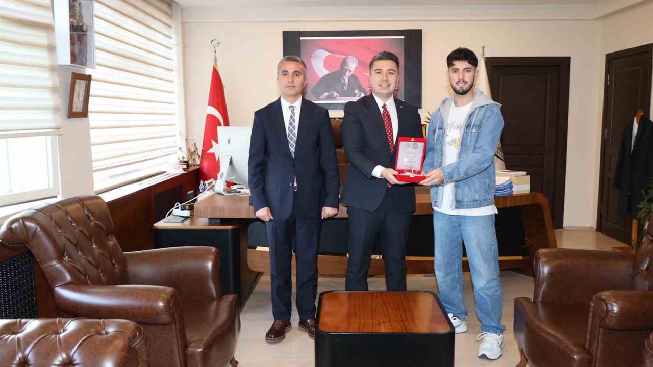 Aydın'ın Karacasu ilçesinde, Kapalı Spor Salonu'nda gerçekleştirdiği başarılı çizimlerle dikkat çeken Karacasu Memnune İnci Meslek Yüksekokulu öğrencisi Arafat Ercan, Kaymakam Mehmet Gündoğdu tarafından plaketle onurlandırıldı. Ercan, kaymakamın makamında tebrik edilerek plaketini aldı. Kaymakam Gündoğdu, gençlerin sanatsal ve kültürel alanlarda gösterdikleri başarıların desteklenmesinin önemine vurgu yaptı. Bu tür çalışmaların kamu alanlarına değer kattığını belirten Gündoğdu, gençlerin motivasyonunu artırmada önemli bir rol oynadığını ifade etti.
