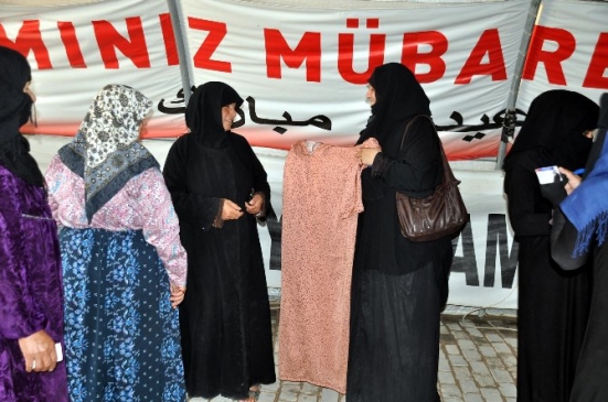 Şanlıurfa’nın Akçakale ilçesindeki Süleyman Şah Konaklama Tesisleri'nde yaşayan 65 yaş üzeri yaşlı kadınlara yöresel kıyafet yardımı yapıldı. Yaklaşık 400 bayanın bir ay önce ölçüleri alınarak, Kadın Meclisine bağlı dikiş atölyesinde üretilen kıyafetler, hafta sonu itibarıyla dağıtılmaya başlandı. Dağıtım işlemi, Çadırkent Müdür Yardımcısı Bekir Engül tarafından muhtarlıklara toplanan yaşlılara yapıldı. Engül, “Yaşlı çınarlar bizlerin hem annesi hem de misafiridir. Onların duasını almak ve hizmet etmek bizler için manevi bir erdemliliktir. Kadın Meclisimizin bu çalışmasından dolayı kendilerine başarılar diliyorum. Çadır kentimizde bulunan gönüllü birimler, bu çalışmalarıyla topluma farkındalık katmaktadırlar. Çadır kent yönetimi olarak bu projeleri desteklemekteyiz” dedi. Suriyeli yaşlılar, gerçekleştirilen bu yardımdan dolayı çadır kent idaresine teşekkürlerini ilettiler.