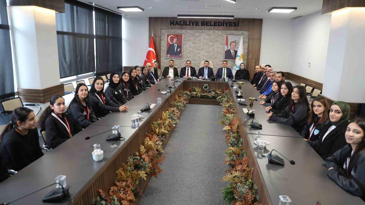 Başkan Canpolat, ziyarette genç sporcuları ve teknik heyeti tebrik ederek, "Haliliye Belediyesi olarak farklı branşlarda lisanslı sporcular yetiştiriyoruz. Basketbol, voleybol, tekvando, kick boks, futbol, güreş, yüzme ve halk oyunları gibi alanlarda altyapı çalışmalarımız devam ediyor. Bugün, 11-15 yaş grubundaki 20 kişilik yıldız kızlar takımımızın Şanlıurfa il birincisi olmasının gururunu yaşıyoruz. Sporcularımızı ve antrenörlerimizi tebrik ediyorum," şeklinde konuştu.