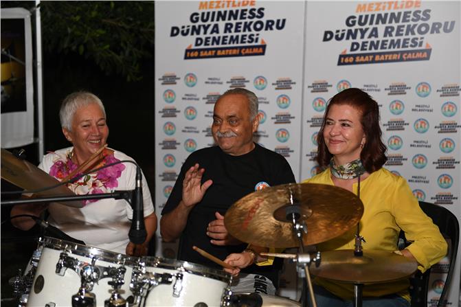 Neşet Tarhan ile birlikte sahildeki yürüyüşlerini tamamlayan Başkan Seçer, son olarak Mezitli’de Guinness Dünya Rekoru denemesi yapan ve 160 saat bateri çalacak olan Oktay Kızılkaya'yı ziyaret ederek, Tarhan ile birlikte bateri çaldı. Başkan Seçer’in eşi Meral Seçer ile Başkan Tarhan'ın eşi Sembol Tarhan da ellerine bagetleri alarak, baterideki marifetlerini gösterdi.