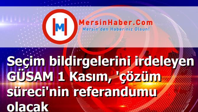 Yapılan analizde, 1 Kasım seçimlerinin, 7 Haziran seçimlerinden en önemli ayrılığının, 7 Haziran sonrasında çözüm süreci diye adlandırılan çatışmasızlık döneminin sona ermesi ya da erdirilmiş olması olduğuna dikkat çekilerek, "Bu sebeple 1 Kasım seçimleri, diğer faktörler de gözden kaçırılmamakla birlikte AKP, HDP ve Öcalan’ın birlikte yürüttüğü ‘Çözüm Süreci’ politikaları için bir referandum niteliği taşımaktadır. Vatandaşlarımız bu seçimlerde çözüm süreci hakkında ve devamı konusunda tercihlerini ortaya koyacaklardır. Yeni oluşacak parlamentonun aritmetiği, büyük ölçüde bu tercihlerin yansımasıyla teşekkül edecektir." denildi.