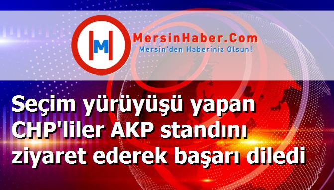 Seçim yürüyüşü yapan CHP'liler AKP standını ziyaret ederek başarı diledi