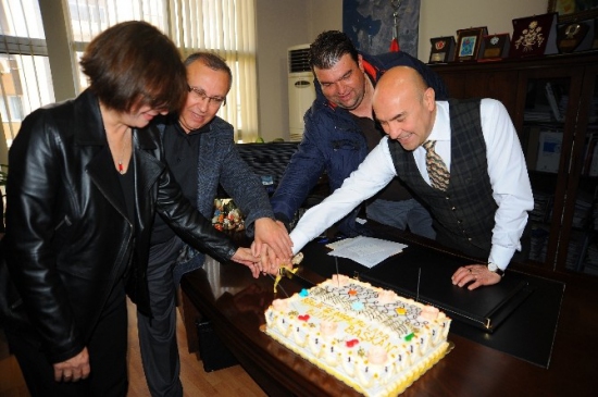 Pasta kesiminin ardından Başkan Soyer, tüm personelle hatıra fotoğrafı çektirdi. Bu özel an, çalışanlar ve başkan arasında güzel bir dayanışma örneği olarak hatırlanacak.