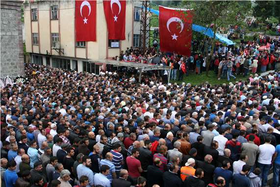 Şehit polisin naaşı daha sonra meslektaşları tarafından omuzlara alınarak, mahalle meydanı dolaşıldıktan sonra cami önünde getirildi. Burada yapılan törene Trabzon Valisi Abdil Celil Öz, Büyükşehir Belediye Başkanı Orhan Fevzi Gümrükçüoğlu, Garnizon Komutanı Jandarma Albay Okçin Akşit, İl Emniyet Müdürü Murat Köksal, Trabzon milletvekillleri, siyasi parti temsilcileri, yakınları ve binlerce vatandaş katıldı.