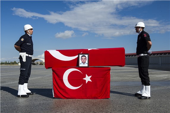 VAN - Van şehir merkezinde dün PKK'lılarla çıkan çatışmada şehit olan polis memuru Yusuf Diri için tören düzenlendi. Törenin ardından şehit, Van'dan memleketi Niğde’ye uğurlandı.