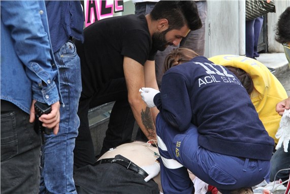 İSTANBUL - Beyoğlu İstiklal Caddesi’nde yürüyen Nurdan Bal (75) kalp krizi geçirip yere yığıldı. Olay yerine gelen sağlık ekipleri sağanak yağmurda şemsiye açarak yaşlı adama kalp masajı yaptı ancak tüm müdahalelere rağmen kurtarılamadı.