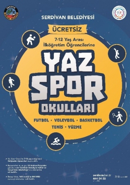 Serdivan Belediyesi ve İlçe Halk Eğitim Merkezi Müdürlüğü tarafından hayata geçirilen ücretsiz yaz spor okullarına kayıt işlemleri başladı. 7-12 yaş arası ilköğretim öğrencilerine yönelik olarak futbol, voleybol, basketbol, tenis ve yüzme branşlarında açılacak olan bu okullara başvuruların 18 Haziran Perşembe günü sona ereceği bildirildi.