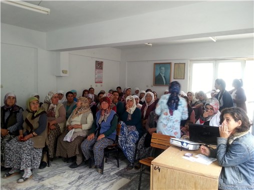 Meme kanserinde erken teşhisin önemini vurgulayan görevliler, 'Meme kanseri nedir?', 'Risk ve faktörleri nelerdir?', 'Belirtileri ne şekilde ortaya çıkar?', 'Kendi kendine meme muayenesi nasıl yapılır?' sorularına detaylı cevaplar verdi. Bilgilendirme eğitimine, büyükşehir düzenlemesinden sonra mahalle olan Şeref köyünden 70'e yakın bayan katıldı.