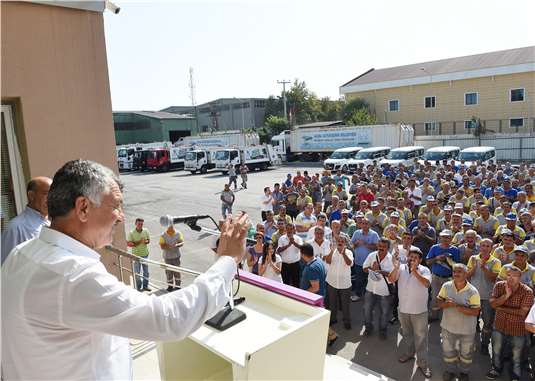 Seyhan Belediyesi Temizlik İşleri Müdürlüğü’nde işçilerle buluşan Başkan Karalar, Seyhan’ın işçi dostu bir belediye haline geldiğini söyledi. Kendisinin de işçi bir babanın oğlu olduğunu belirten Karalar, “Çukobirlik’te 17-18 yaşında işçi olarak başladığım çalışma hayatımda hep emekçiden yana oldum. Şimdi de belediye başkanı olarak emekten yana tavır alıyor ve siz değerli işçi kardeşlerimize bayram öncesi ikramiye müjdesini veriyorum.” dedi.